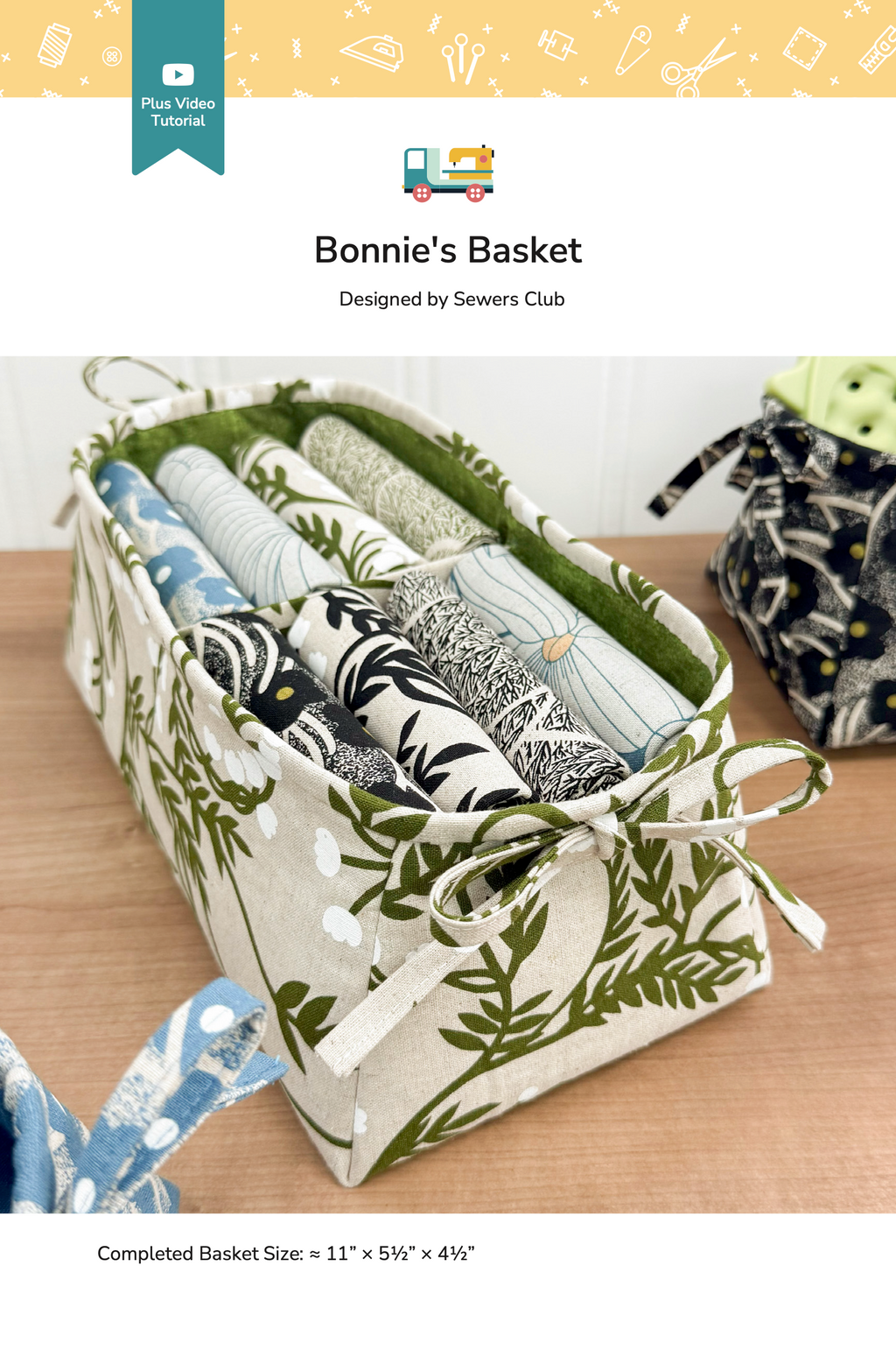 The Bonnie's Basket pattern was featured in the Sewers Club July 2025 Project Box. Pattern makes (1) basket.