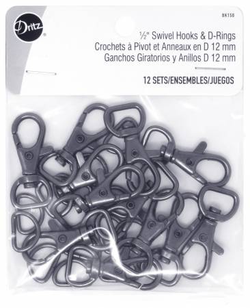 The Dritz Small Swivel Hook & D-Ring is the perfectly sized set of hardware designed for use on the straps of wristlet and small clutches. The D-ring attaches to a small tab of fabric that extends from the side of the wristlet. The swivel hook is attached to the strap and connects to the D-Ring. Unhook the swivel hook when strap is not required or desired.