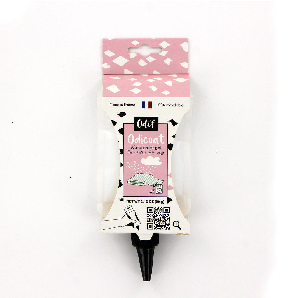 Waterproof gel glue protects fabrics, creating an oilcloth like finish. Can be used with most fabrics. Additionally, Odicoat is a very strong permanent glue for fabric. When dry, Odicoat provides a finish on fabric that is similar to oilcoth whilst protecting it from UV and stains. Touch dry in 30 minutes. Completely dry within 12 hours.